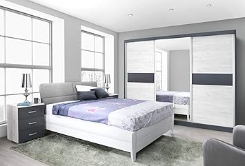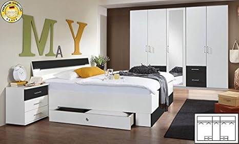 Schlafzimmer Komplett 4 Teilig 603560 Weiss Anthrazit Amazon De Kuche Haushalt