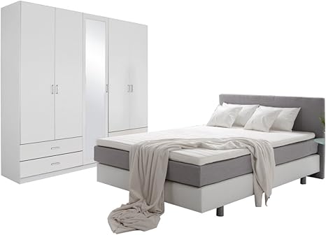 Unbekannt Schlafzimmer Komplett Set Weiss Mitt Boxspringbett Mit Schrank Weiss 180x200cm 5turiger Schrank Amazon De Kuche Haushalt