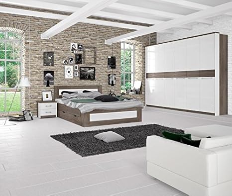 Schlafzimmer Komplett Set I Lepa 5 Teilig Farbe Eiche Dunkelbraun Weiss Hochglanz Amazon De Baumarkt
