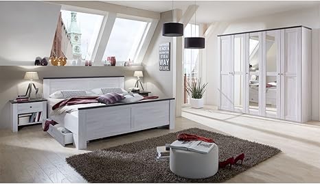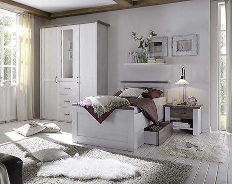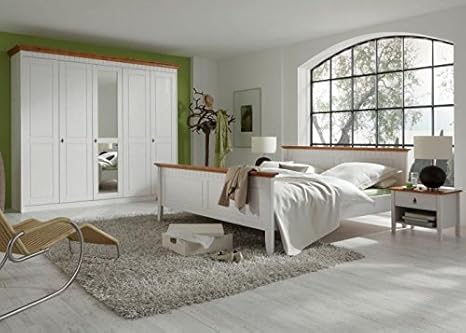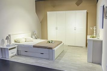 Komplett Schlafzimmer Doppelbett Bett Nakos Kleiderschrank Luca Pinie Weiss Landhaus Amazon De Kuche Haushalt