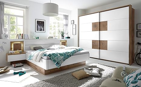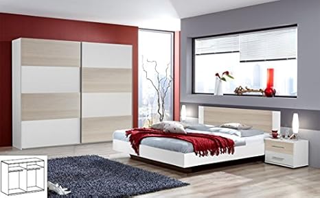 Schlafzimmer Komplett Eiche Kleiderschrank Doppelbett 2 Nachtkonsolen Sonoma Eiche Weiss 3360 Amazon De Kuche Haushalt
