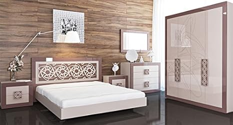 Unbekannt Schlafzimmer Komplett Mit Kleiderschrank 137 Cm 6581 Hellbraun Cappuccino Hochglanz Amazon De Kuche Haushalt