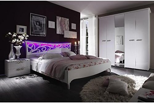 Qmm Traum Moebel Schlafzimmer Komplett Weiss Hochglanz Iris Set A Schrank Led Bett 200 X 160 Nachttische Soft Close System Amazon De Kuche Haushalt