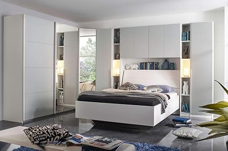 Lifestyle4living Schlafzimmer Komplett Set In Weiss Und Grau 8 Teilig Modernes Komplettset Mit Schranken Regalen Uberbau Und Bett Amazon De Kuche Haushalt