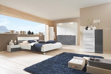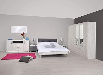 Schlafzimmer Komplett Licht Moderne Perpignan Farbe Dunkelgrau Und Weiss Lackiert Liegeflache 140 X 200 Cm 1 Amazon De Kuche Haushalt