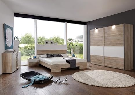 Schlafzimmer Komplett Set Abuko A 4 Teilig Farbe Sonoma Eiche Weiss Amazon De Baumarkt