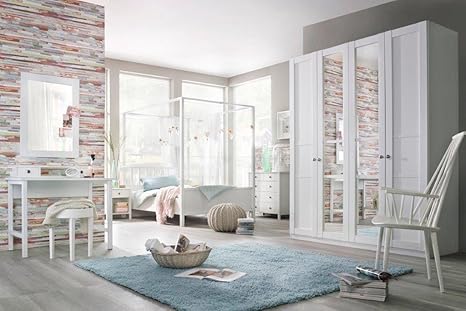 Schlafzimmer Komplett 846965 4 Teilig Mit Kleiderschrank Weiss Brombeer Amazon De Kuche Haushalt