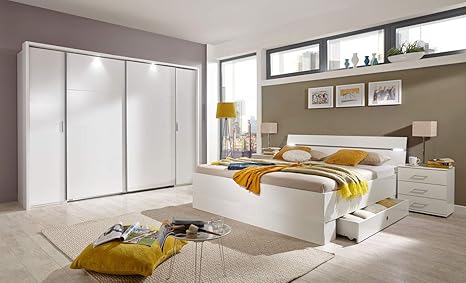 Lifestyle4living Schlafzimmer Komplett Set In Weiss 4 Teilig Modernes Komplettset Mit Dreh Schwebeturenschrank Bett Und Nachtschranken Amazon De Kuche Haushalt