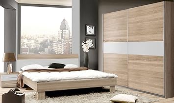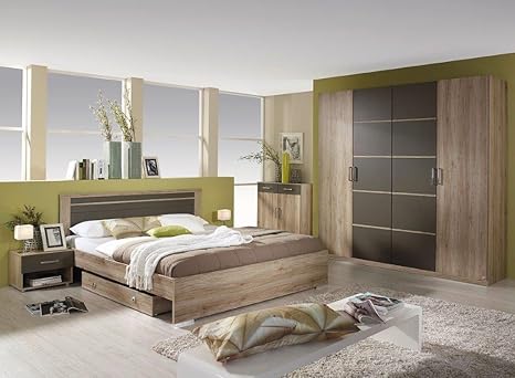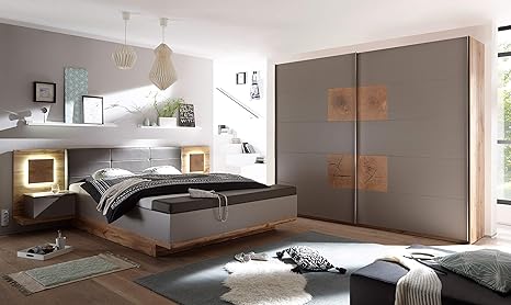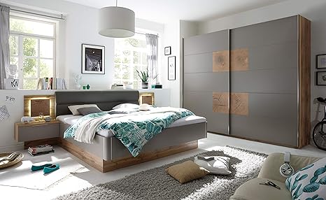 Schlafzimmer Komplett Set Heilbronn Mit Bett Kleiderschrank Eiche Sanremo Grau Amazon De Kuche Haushalt