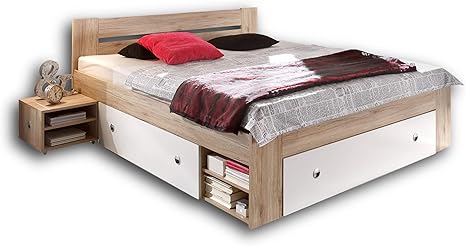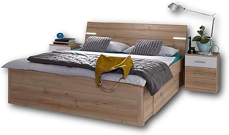 Stella Trading Stefan Doppelbett Bettanlage 180 X 200 Cm Mit 2x Nachtkommoden Schlafzimmer Komplett Set In Eiche San Remo Optik Weiss 185 X 86 X 204 Cm B H T Amazon De Kuche Haushalt