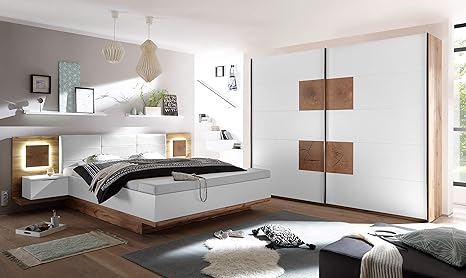 Schlafzimmer Komplett Set 4 Tlg Bergamo Bett 180 Kleiderschrank 270 Cm Nachtkommoden Weiss Wildeiche Amazon De Kuche Haushalt