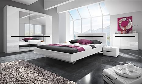 Schlafzimmer Set Hektor Hochglanz Bett 180 200 Cm Weiss Weiss Hochglanz Amazon De Kuche Haushalt